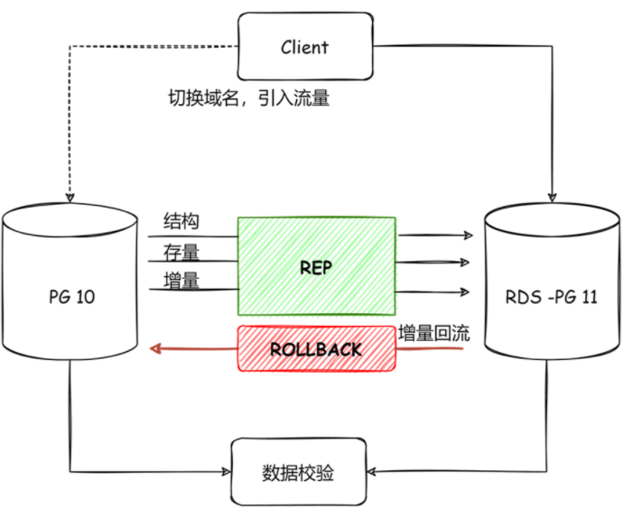 4. 回滚阶段: 增量数据回流,若出现问题可快速回滚。