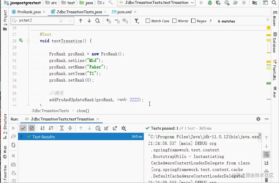 addProAndUpdateRank()方法插入新的选手,并在事务中更新选手的rank字段。此方法包含逻辑如下: