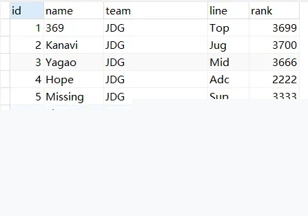 String SQL = "INSERT INTO pro_rank(name,team,line,rank) VALUES(?,?,?,?)";