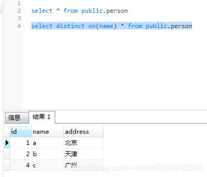 PostgreSQL按照某一字段去重,并显示其他字段信息