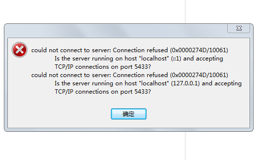 PostgreSQL连接出错 could not connect to server:Connection refused(0x0000274D/10061)