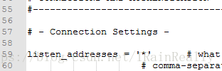 2、PostgreSQL\9.5\data\postgresql.conf文件中,找到“#listen_addresses = 'localhost'”,把它改成“listen_addresses = '*'”。