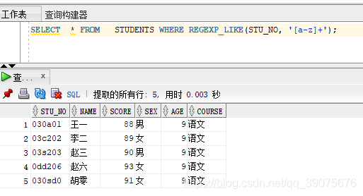 SELECT * FROM STUDENTS WHERE REGEXP_LIKE(STU_NO, '[a-z]+');