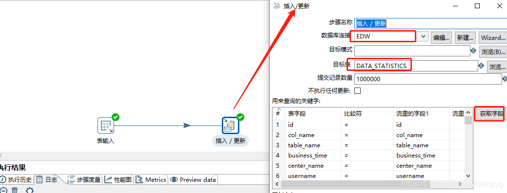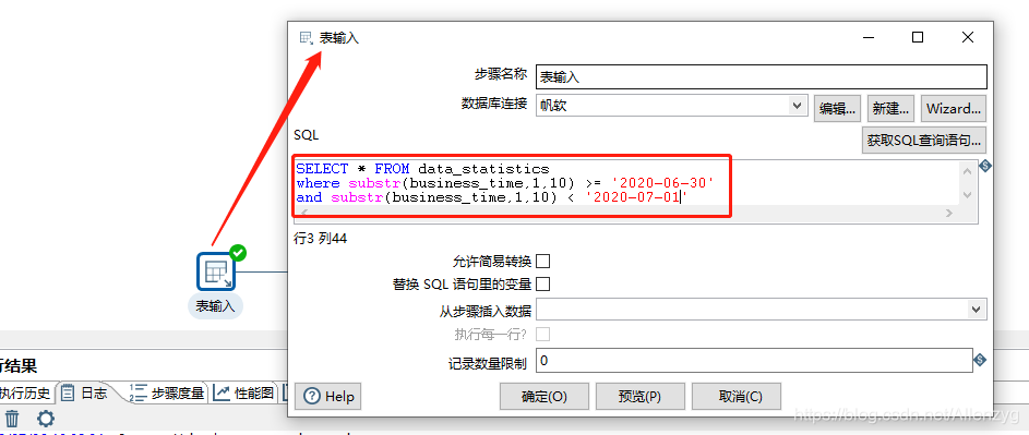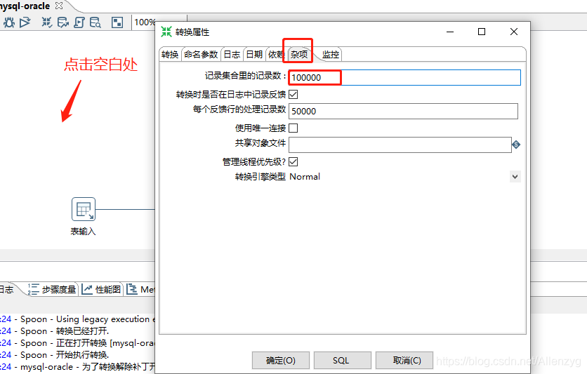 打开kettle,转换页面,双击空白处,会出现上图所示的弹框,在杂项中会看到记录集合中的记录数,需要修改这一栏的数值,也就是解除同步条数的限制,可以大概评估一下自己的数据量,来合理的设置该值,设置完成之后,重新运行,成功。