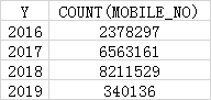 select to_char(created_time,'yyyy') as y, count(mobile_no)
