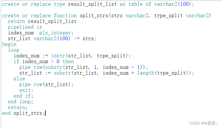 create or replace function split_strs(strs varchar2, type_split varchar2)