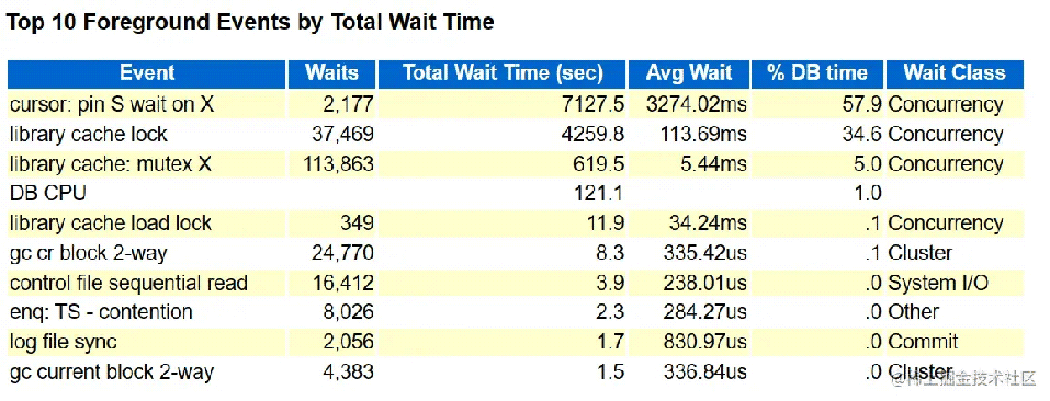 当然也要结合我们的AWR报告:(两份为同时间段,上一份为有争用,下一份为正常情况,报告太长,只截取了关键点)