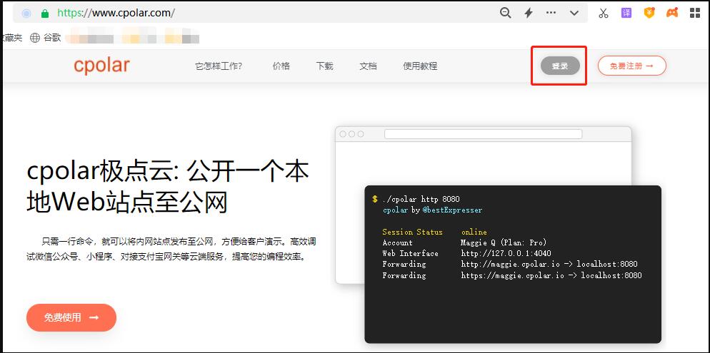 这里需要注意的是,cpolar通过为用户生成专属的通道,并且辅以复杂token码和不对称加密,保障用户的数据安全不被拦截和破解。因此我们最好在下载安装cpolar的同时,就在官网完成注册。只要在官网右上方点击免费注册按钮,就能进入cpolar的用户注册页面,接下来只要安装网页提示填入邮箱、预留的密码等简单信息,就能完成cpolar的用户注册。
