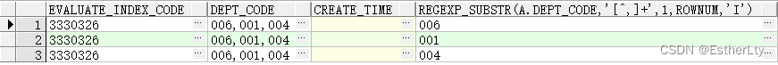 SELECT DISTINCT A.*, REGEXP_SUBSTR(A.DEPT_CODE, '[^,]+', 1, Level, 'i')