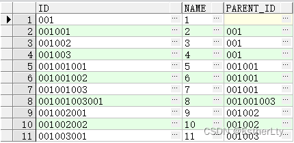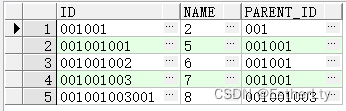 - connect by [prior] id=parentid :这部分是用来指明oracle在查找数据时以怎样的一种关系去查找,比如说查找第二层的数据时用第一层数据的id去跟表里面记录的parentid字段进行匹配,如果这个条件成立那么查找出来的数据就是第二层数据,同理查找第三层第四层…等等都是按这样去匹配。