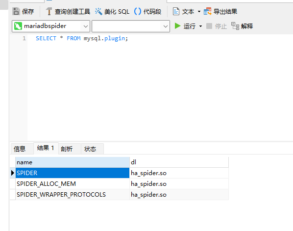 接着打开名为 mariadbspider 的容器,在里面按照 Spider 插件: