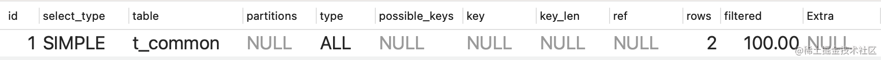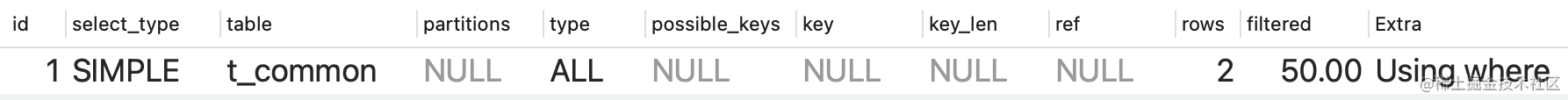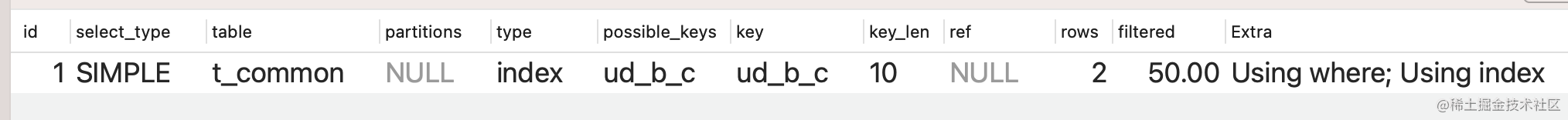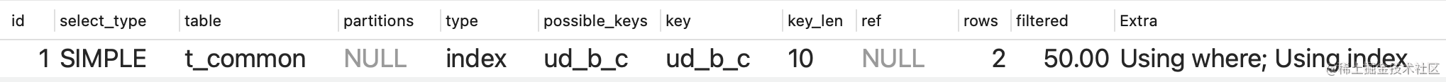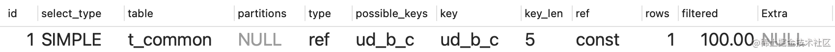 select a,b,c,d from t_common where c=1;explain结果如下: