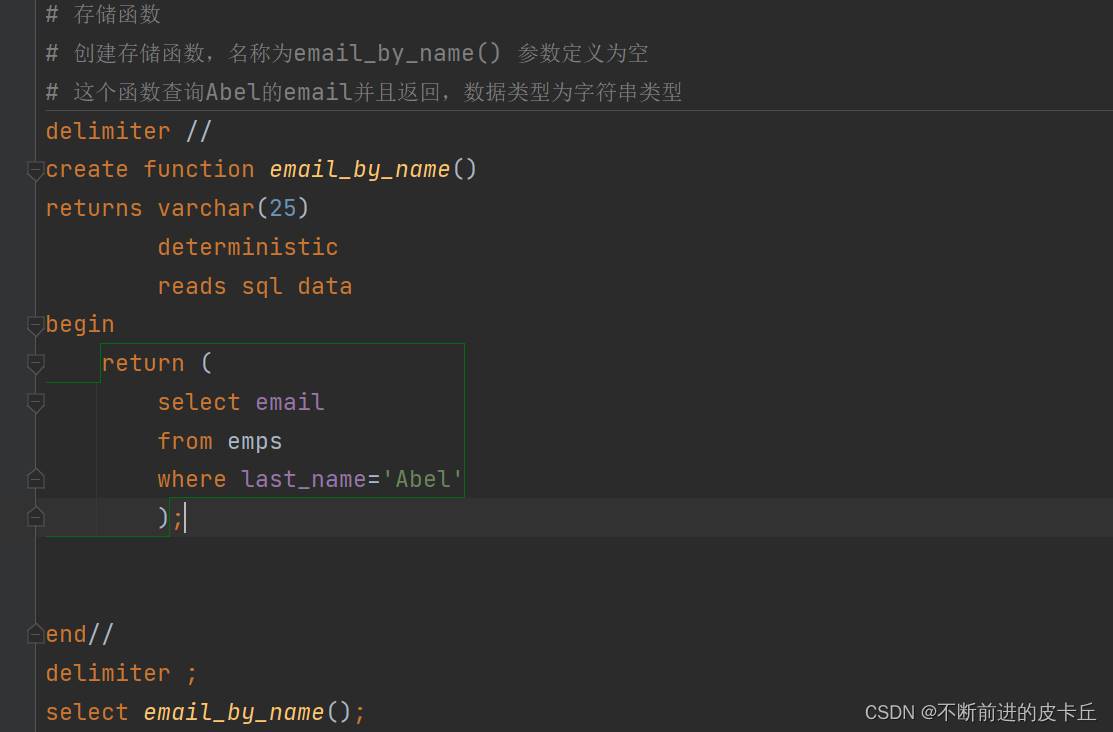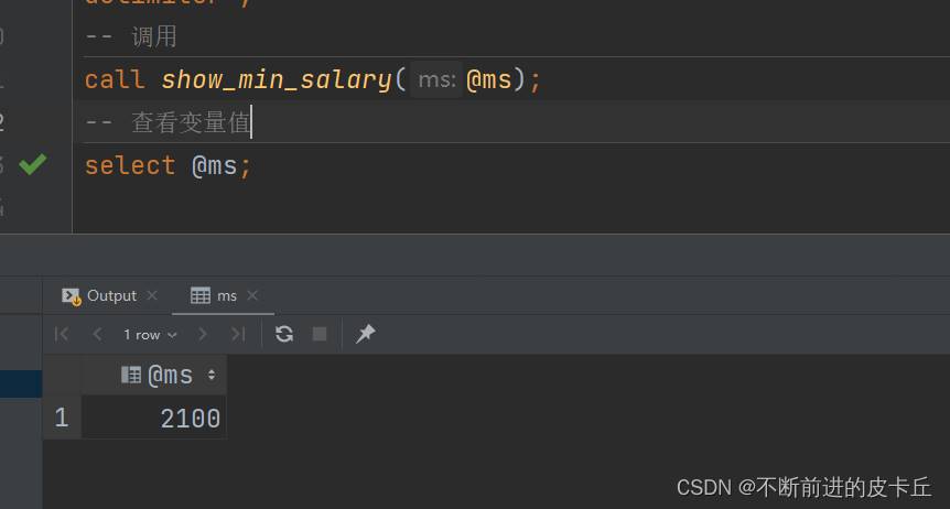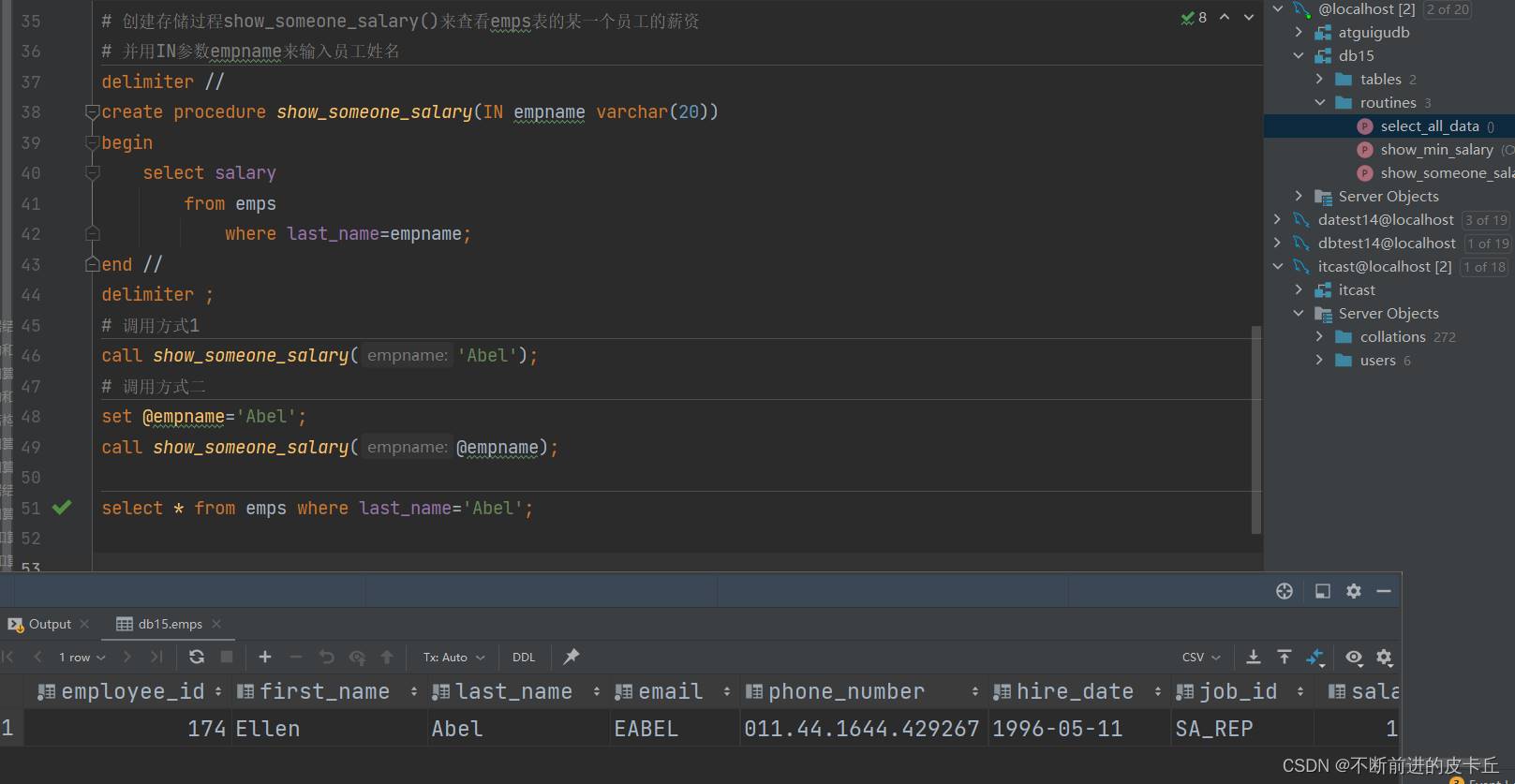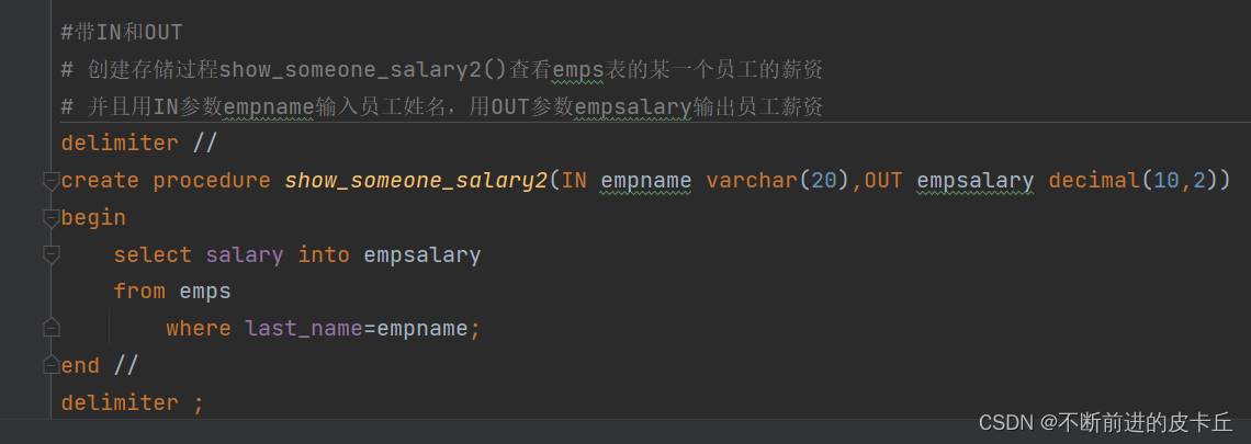 - 存储过程定义完毕之后再使用“DELIMITER ;”恢复默认结束符。DELIMITER也可以指定其他符号作为结束符。