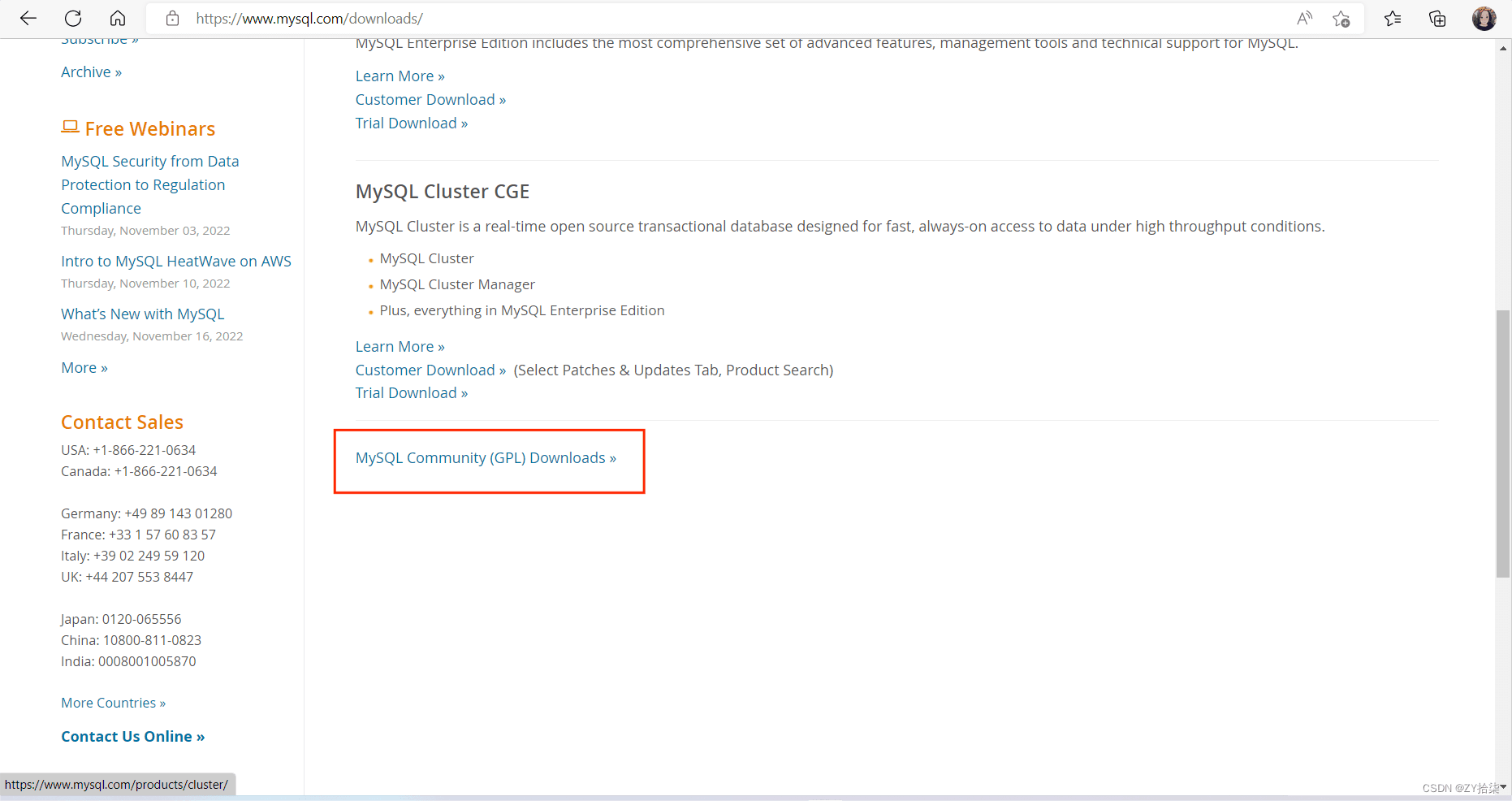 打开MySQL的官网,点击图中标红方框中的内容即可,如不理解(可私信)