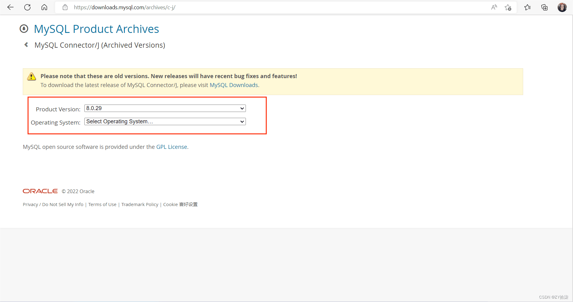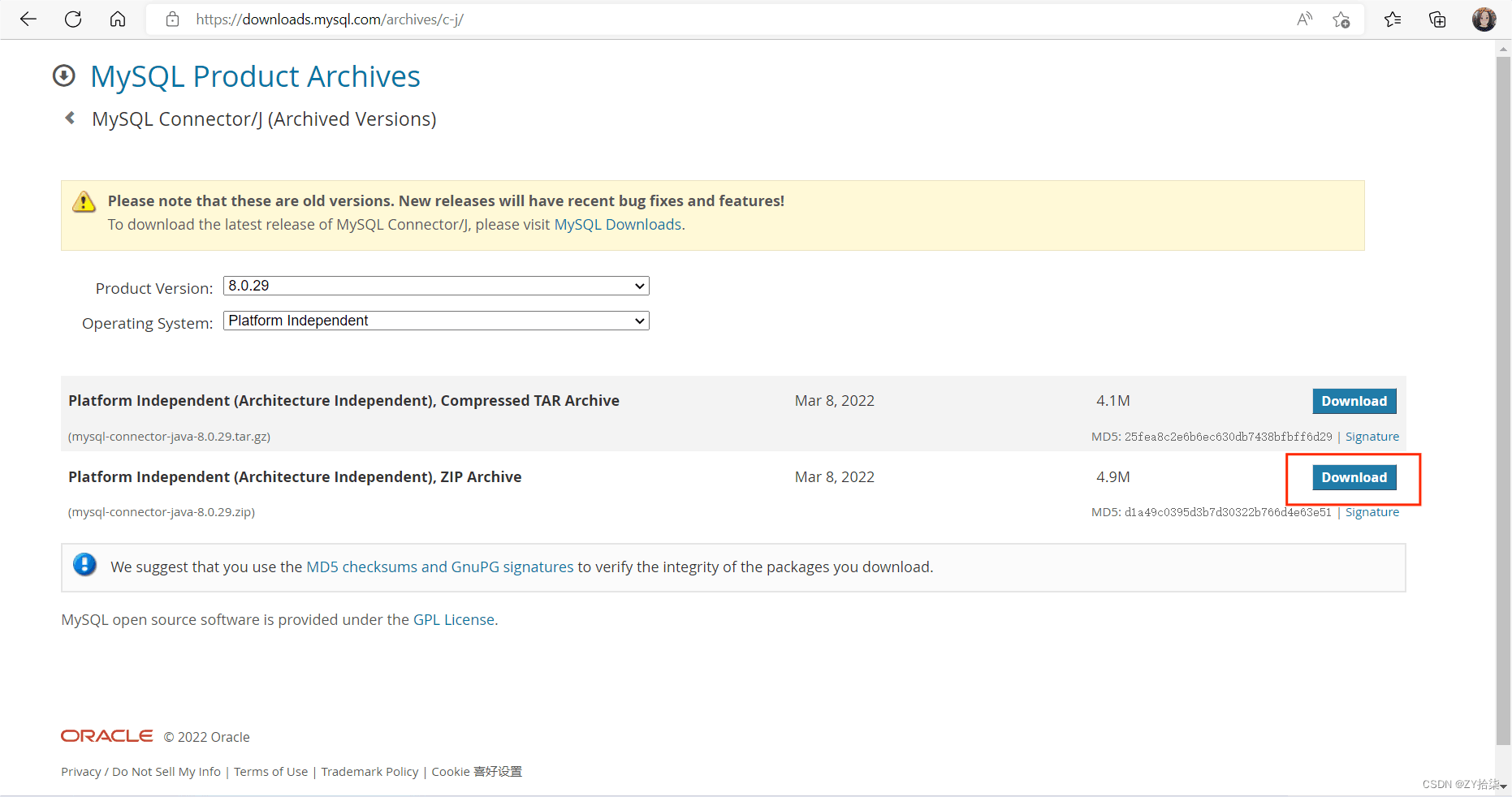 这里注意一下:要选择与自己数据库版本相一致(eg:我的为8.0.29)