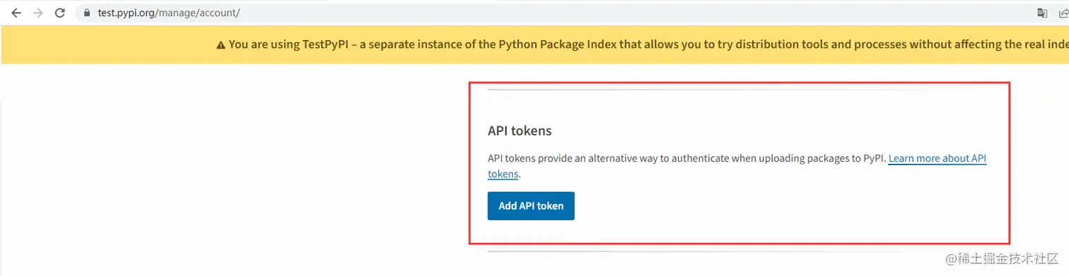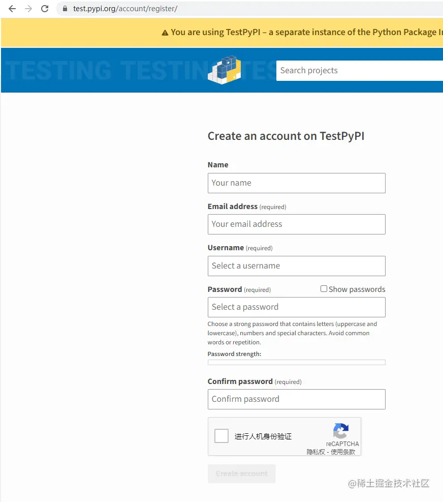 这里还有一点需要注意,如果我们是第一次将python进行打包上传到pypi或者说只是为了测试,建议一开始不直接上传pypi.org,而是上传至test.pypi.org,这是python提供的一个测试系统,环境和pypi.org一致,所以,我们本篇文章所上传的库为test.pypi.org。