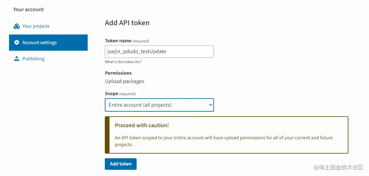至此,注册pypi,生成token已经结束了。