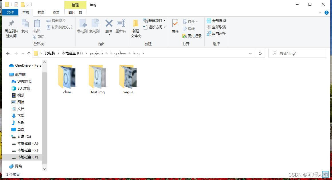 img文件夹中包含存放需要分类的图片的文件夹自定义(如test_img)以及将来的两个结果文件夹vague和clear