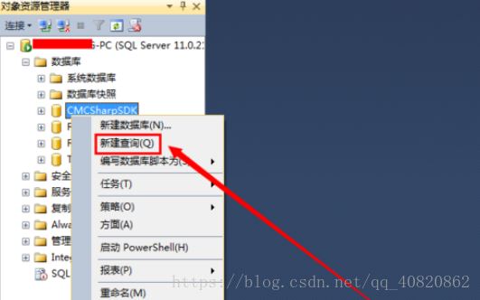 ****2.****打开数据库,右键某一个数据库,选择“新建查询(Q)”。
