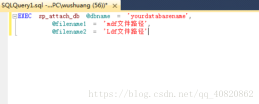 EXEC sp_attach_db @dbname = ‘你的数据库名',