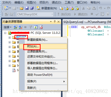 ****1.****在“数据库”处右键选择“附加”,打开附加界面。