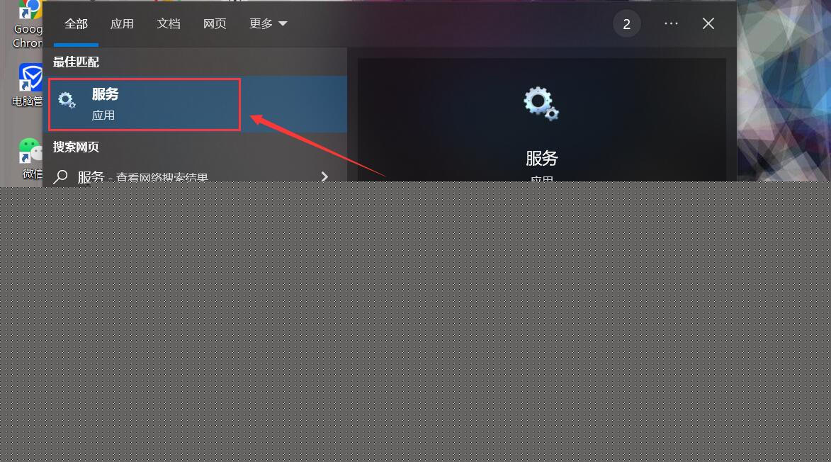 首先要把 SQL Server 的服务都关掉,通过 Windows 最下面搜索框搜索 【服务】 并打开(或者同时按住 Win + R 键,在弹出的运行框里面输入【services.msc】命令也可以进入到【服务】)