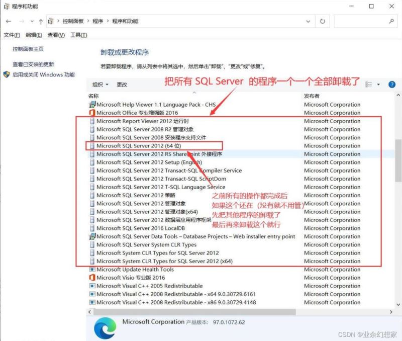 注:每个人的可能会有不同,顺着列表看一下,只要是带有 SQL Server 的都要删除掉