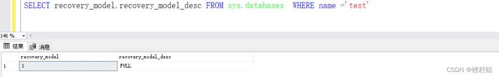 脚本检查恢复模式:SELECT recovery_model,recovery_model_desc FROM sys.databases WHERE name ='test';