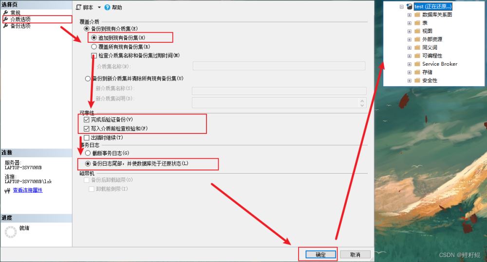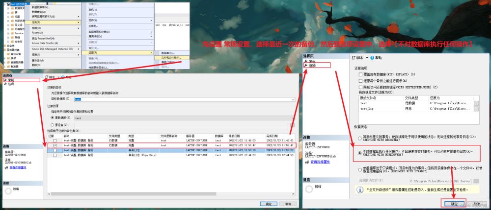 完成上述事务日志的备份后,我们就需要将数据进行还原。