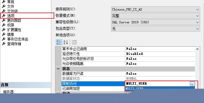 将限制访问,从【SINGLE_USER】修改为【MULTI_USER】即可