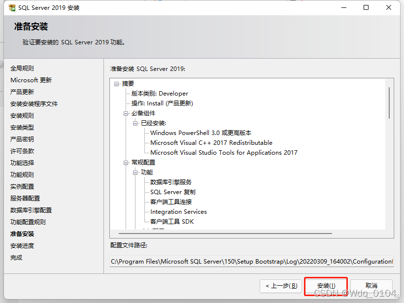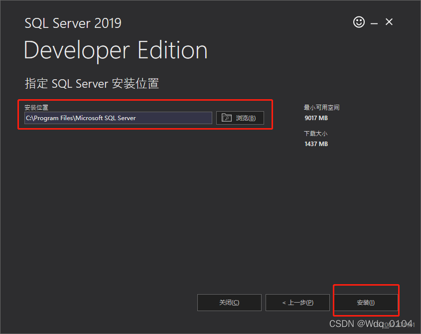 可以重新选择“安装位置”,点击“安装”。(我这里以 C:\Program Files\Microsoft SQL Server 安装地址为例)