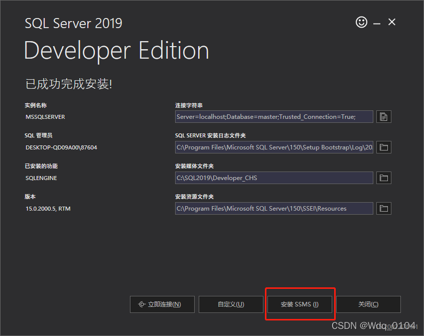 SSEI安装完成后,点击“安装SSMS”,先下载好 SQLServer 2019管理工具,安装完SSEI后就需要安装SSMS。