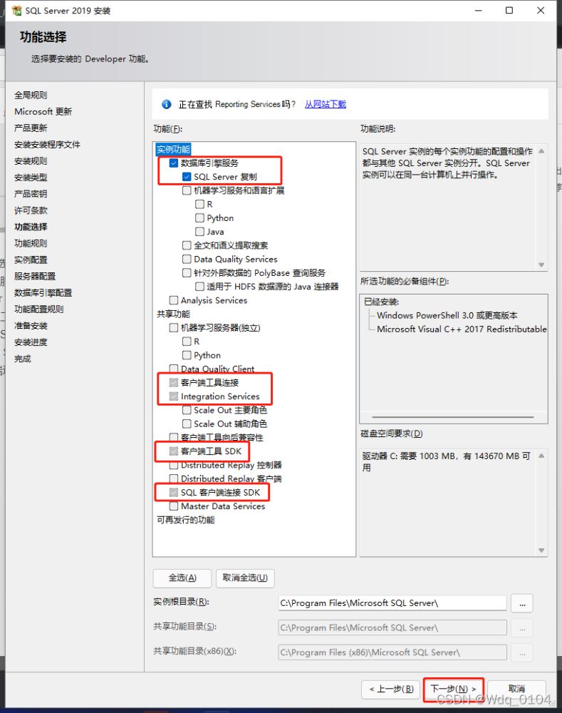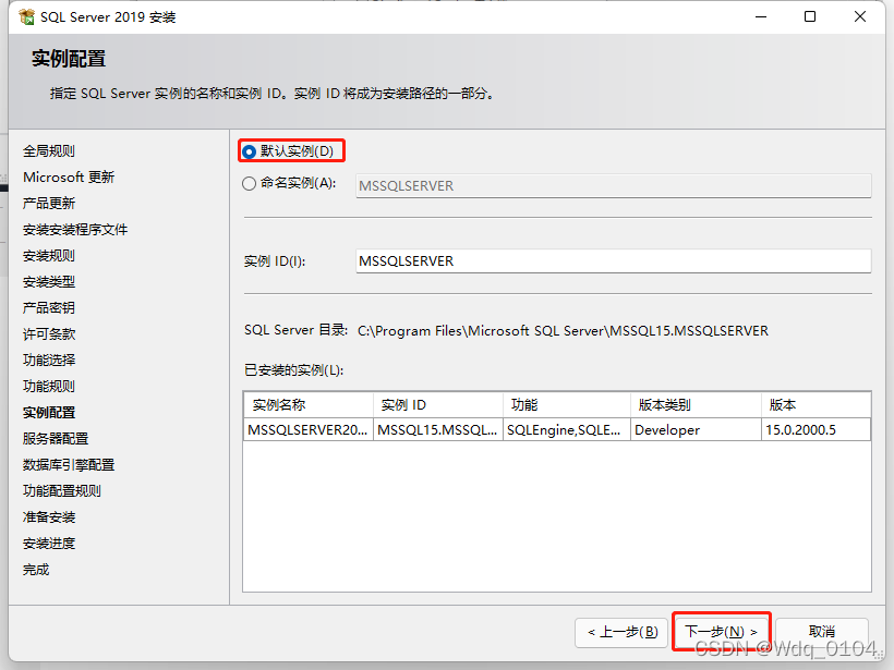 可以使用默认实例,也可以自己命名实例,点击“下一步”。