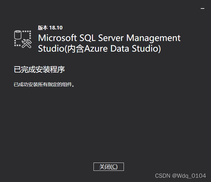 显示这些信息的时候,就意味着安装完成了,点击“关闭”。接下来安装SSMS 管理工具。