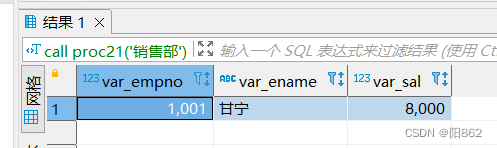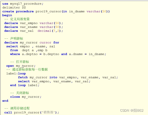 -- 需求:输入一个部门名,查询该部门员工的编号、名字、薪资,将查询的结果集添加游标