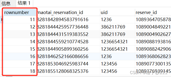利用row_number函数给每行记录标了一个序号,相当于在原表中多加了1列返回。