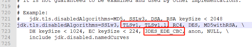 ... 8 common frames omitted2. 找到 jdk.tls.disabledAlgorithms 如果有TLSv1、TLSv1.1、3DES_EDE_CBC 删除即可【使用管理员模式编辑】