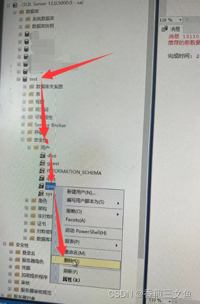 那么开test这个数据库找到刚刚新建的用户删掉之后再去执行这个语句