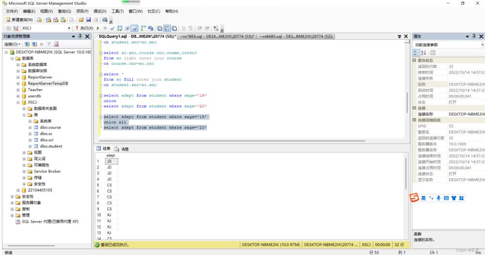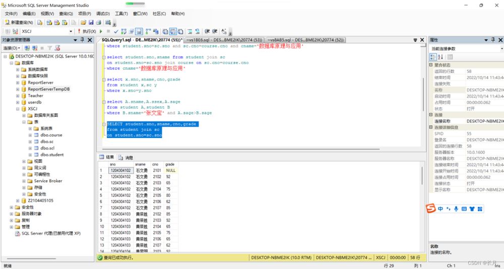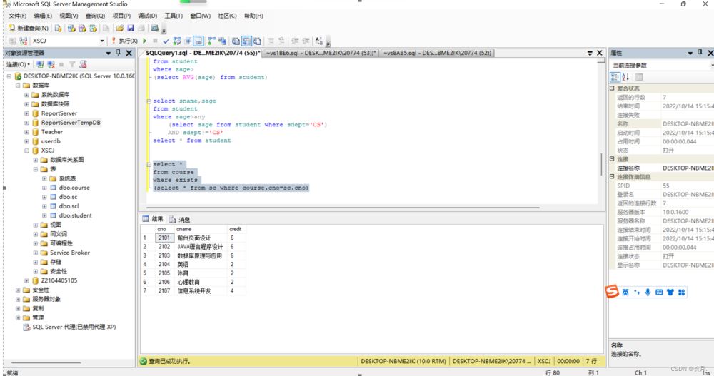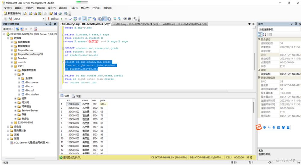 到此这篇关于SQL Server数据库连接查询和子查询的文章就介绍到这了,更多相关SQLServer连接查询和子查询内容请搜索编程学习网以前的文章希望大家以后多多支持编程学习网!