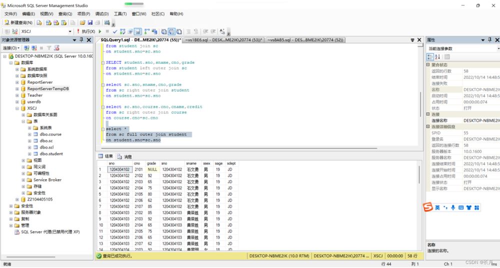 9.student和sc表实现全外连接
