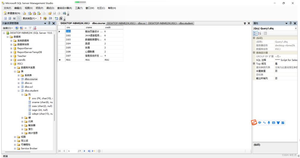 查看course表