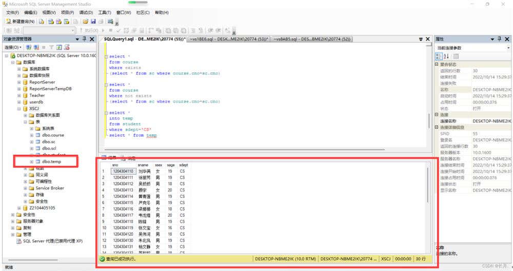 17.查询CS系学生的信息,生成一个新表temp