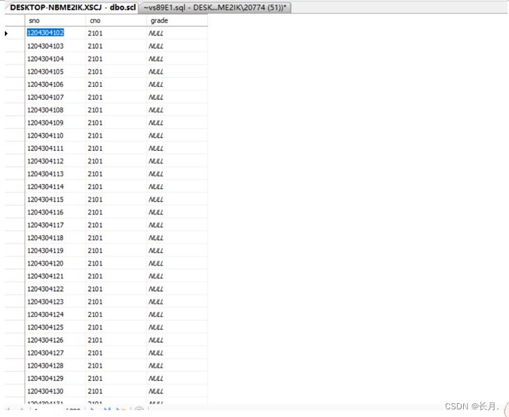 18.将所有的学号和课程号信息生成一个新表SCL