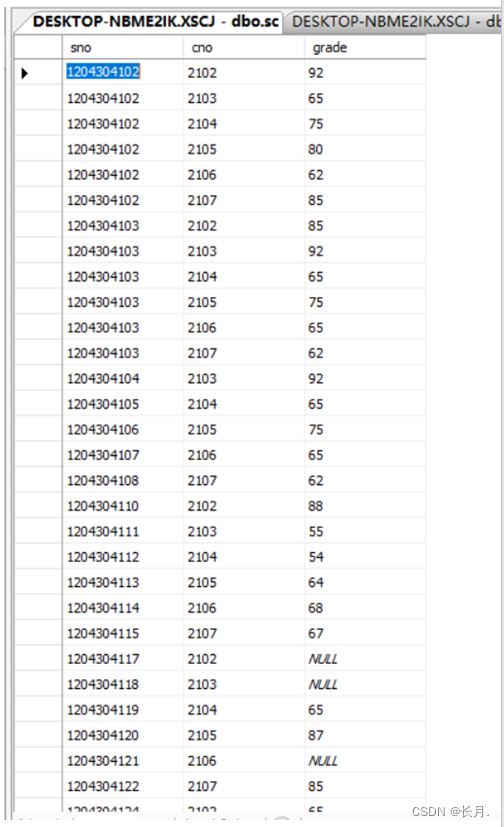 5.用格式二实现查询所有学生的学号、姓名、选修课程号和成绩