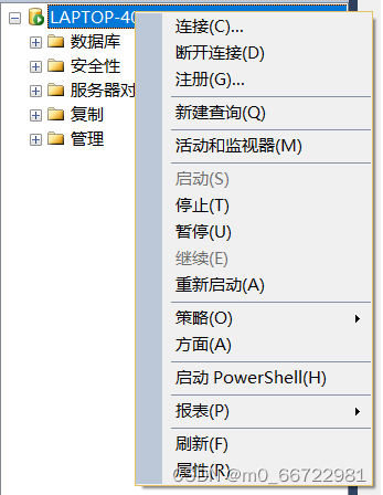 找到对象资源管理器的第一个,单击鼠标右键后出现以下页面: