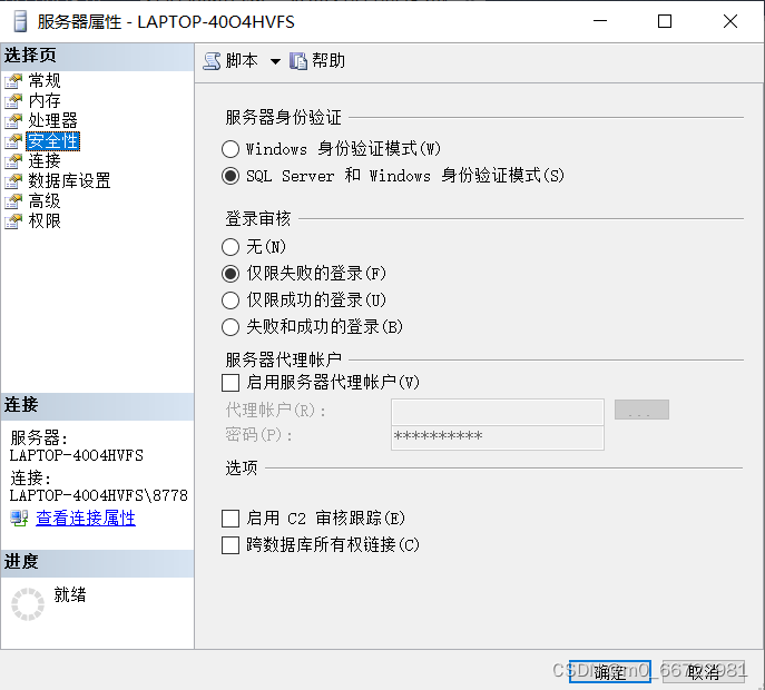 步骤一:先检测自己的SQL Sever有没有打开密码功能