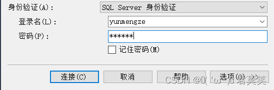 if connect:'yunmengze', '123456', 'soft2104'是上述步骤二操作中设置的。