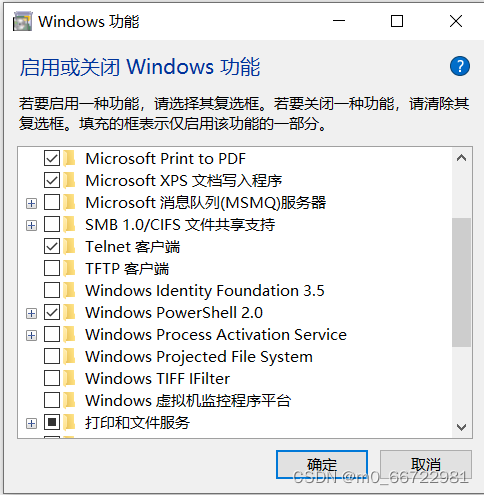 将Telnet客户端对号选中,点击确定,会经过大概1分钟左右的等待页面