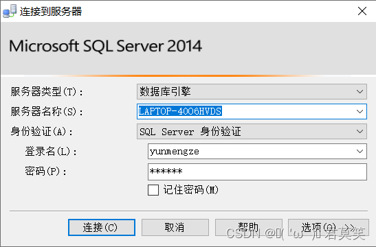 LAPTOP-40O6HVDS是我的服务器名称,在这里你需要打开你的SQL Sever登录界面进行查看。