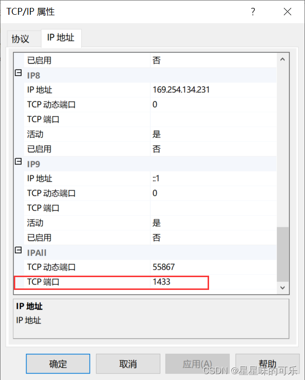 将IP1和IP10和IPALL的TCP端口都设置为1433,IP地址设置为127.0.0.1即可。在设置完成之后一定要重启sql sever服务,如下图: